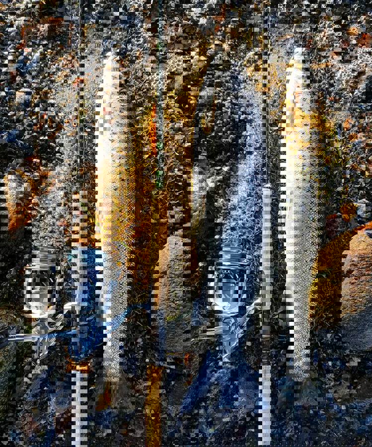 Mange følgere og fisk, der huggede forsigtigt. Det gav flere undermålsørreder og fisk omkring målet, inden Gorm kronede dagen med en fin ørred på 50 cm. Den huggede på en Snurrebasse i kobber.