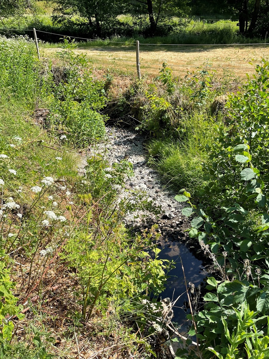 I de mindre vandløb mangler der 10 cm vand, men der er ikke nogen udtørring, og Kim regner med, at ynglen trækker med nedstrøms ved den lavere vandstand, så lige nu er han ikke så nervøs, men fortsætter tørken, og bliver markvandingen forøget, kan det komme til at se anderledes ud i løbet af nogle uger.