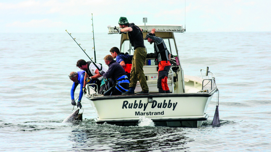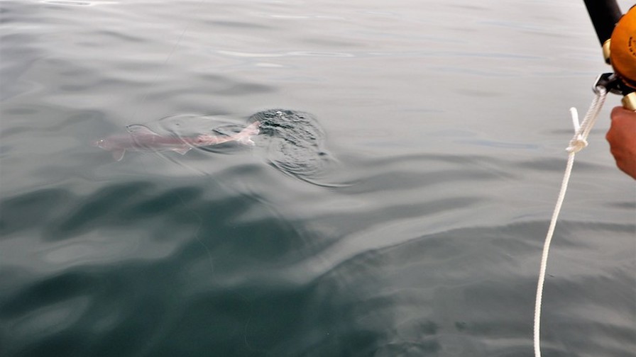 Det var ikke kun tun, der bed på sildene. Der blev fanget masser af småhajer, som alle blev genudsat. Og så blev der set mange tunfisk i overfladen – som desværre ikke kunne lokkes til at tage agnen.
