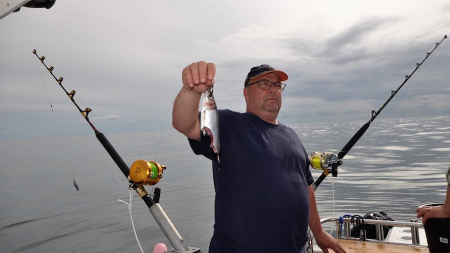 Det kunne lyde som en trist historie: Ud af 6 mulige fiskedage er lystfiskerne blæst inde de 5. Men der er ingen dårlig stemning hos Kim Årestrup, DTU Aqua, der er ansvarlig for mærkningen af tunfiskene.