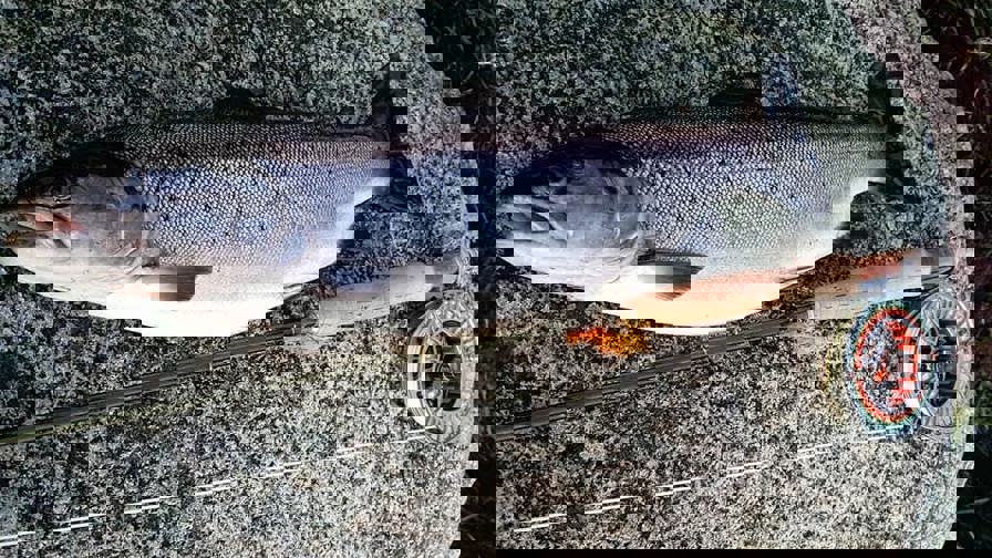 Lørdag var han afsted igen sammen med to gode venner i høj sol og smukt vejr. Valget faldt denne dag på fluestangen og de fiskede sammen ned overstrækningen. De to venner fik flere gode fisk med den største lige over 2 kg, mens Gorm måtte vente til ud på eftermiddag, før en tyk blank fisk hev godt og grundigt i hans klasse 6 stang.