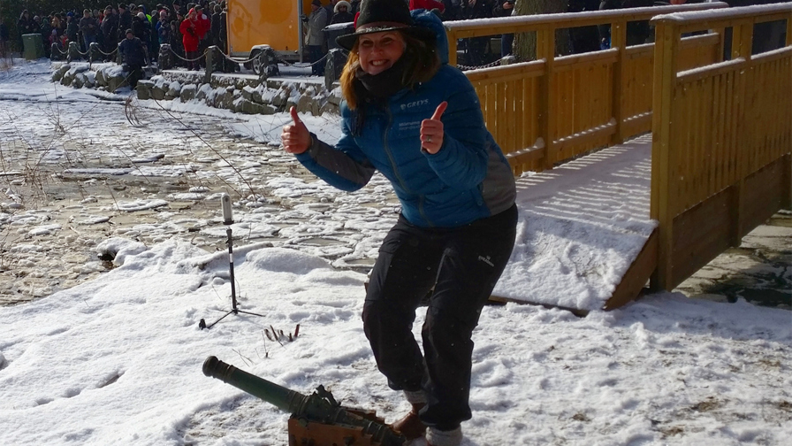 Pladschefen hos svenske Mörrums Kronolaxfiske, Ida-Maria Rigoll, var meget spændt lørdag den 17. marts. Det var første gang, hun skulle affyre kanonen, som højlydt markerer sæsonstarten. Ida-Maria var derfor synligt lettet, da alt virkede som planlagt, og de mange fremmødte tilskuere applauderede efter affyringen.