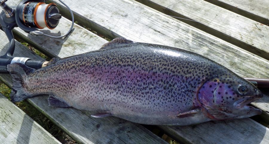 Flot regnbueørred fra Drostrup Sø, som er et stort aktiv for Vejen og Omegns Sportsfiskerfornening.