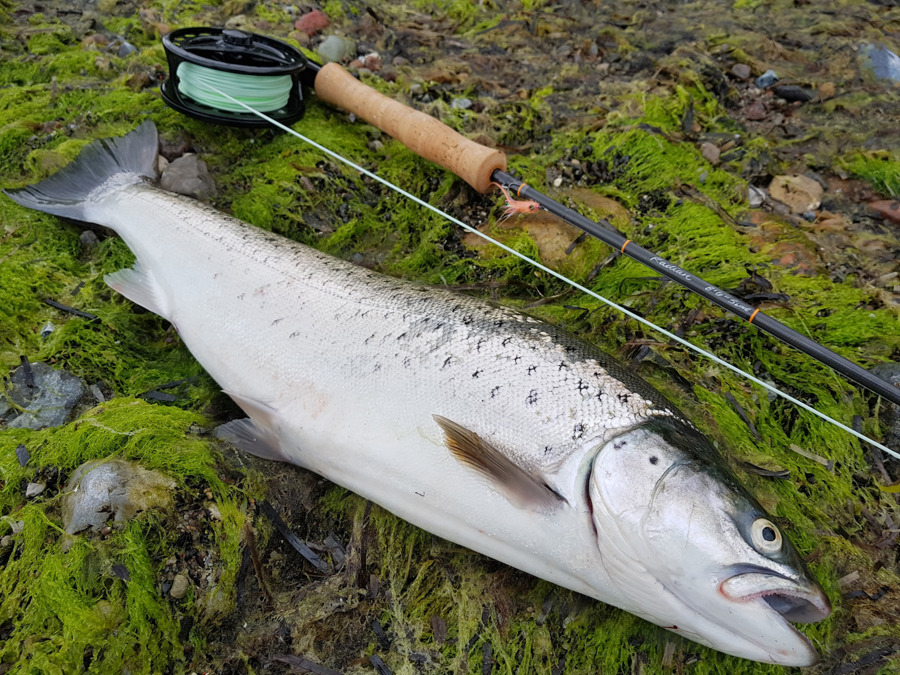 Martin Harregaard fra Næstved var tidlig på færde på den sydsjællandske kyst om morgenen torsdag den 14. juni. Allerede kl. 04.00 var han i vandet, og i løbet af de første timer fik han hilst på to fine havørreder, der villigt tog fluen Vaskebjørnen. De lå begge omkring de 45 cm og fik hurtigt deres frihed igen.