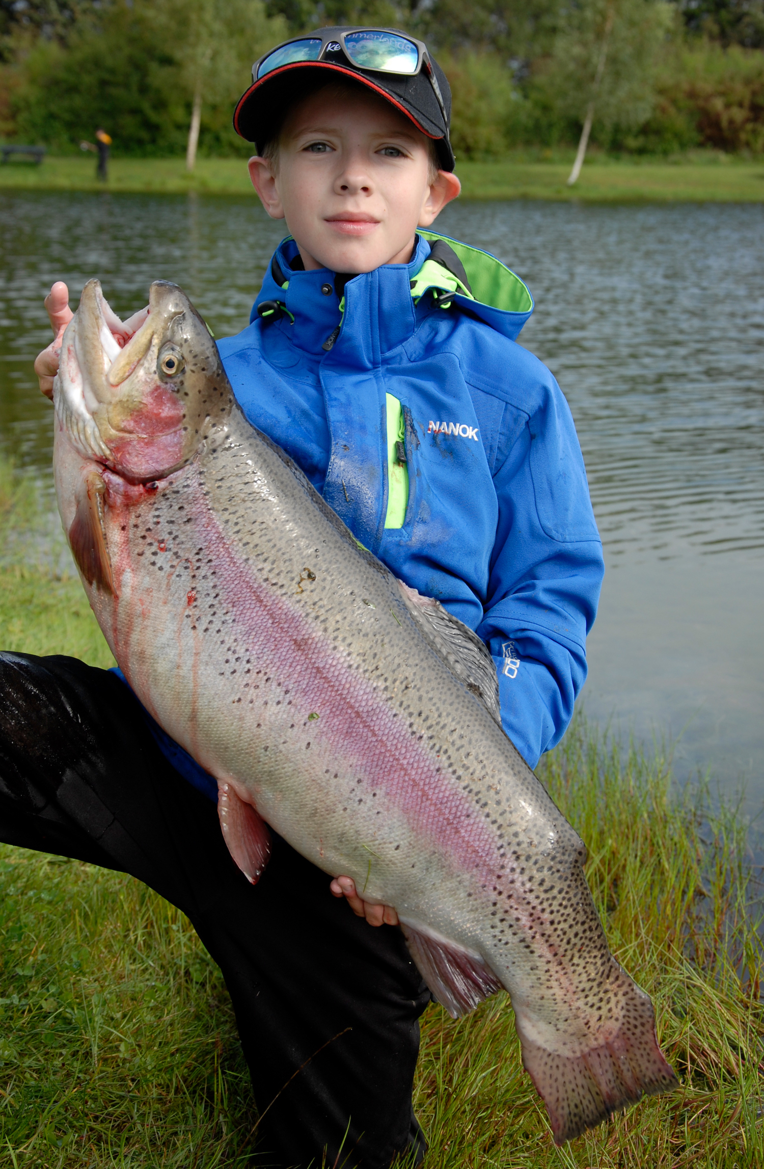 Først fangede Frederik nemlig en flot regnbue på 1,4 kg på Powerbait, inden storebror Christian blev dagens storfanger, da det lykkedes ham at overliste en af søens mega-regnbuer på hele 6,8 kg på et mikro-blink.