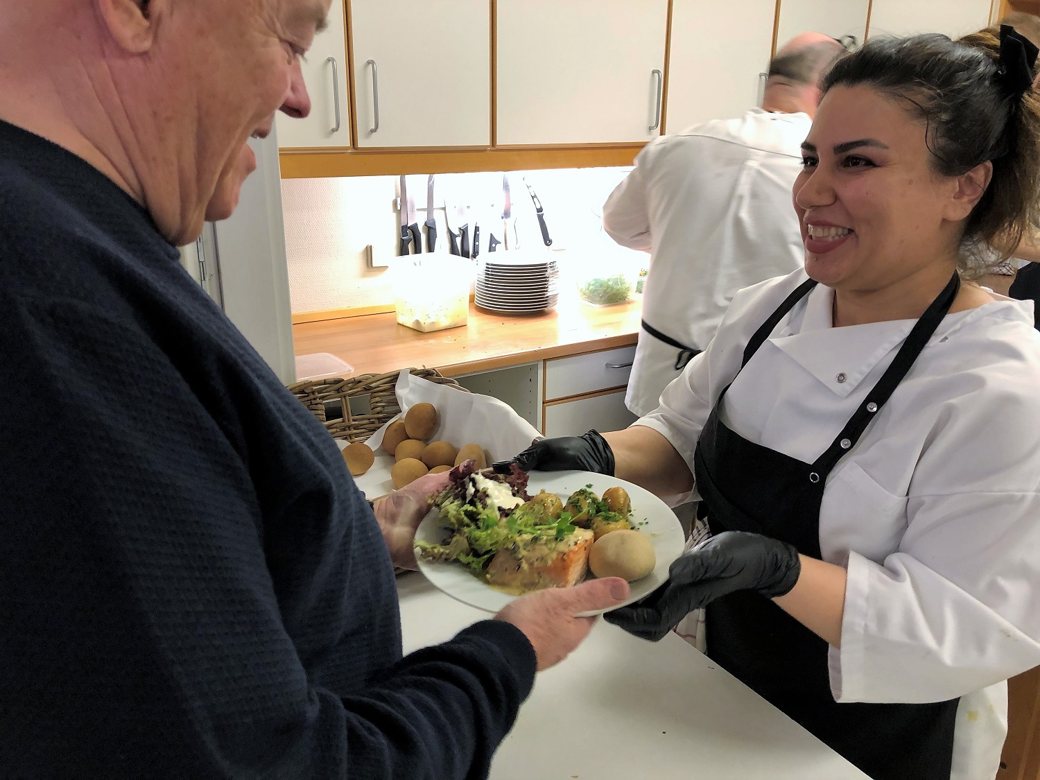 Maden stod Restaurant Store Børs for, men på grund af den store tilslutning var arrangementet flyttet fra selve restauranten til sejlklubbens større lokale. Efter den velsmagende laks blev der serveret masser af tips til teknik, udstyr og fiskepladser til det spændende og udfordrende pighvarfiskeri, og i pausen benyttede ROLKs formand Uffe Clemmesen naturligvis lejligheden til at fortælle om sin forening og de mange aktiviteter, der foregår i klubben.
