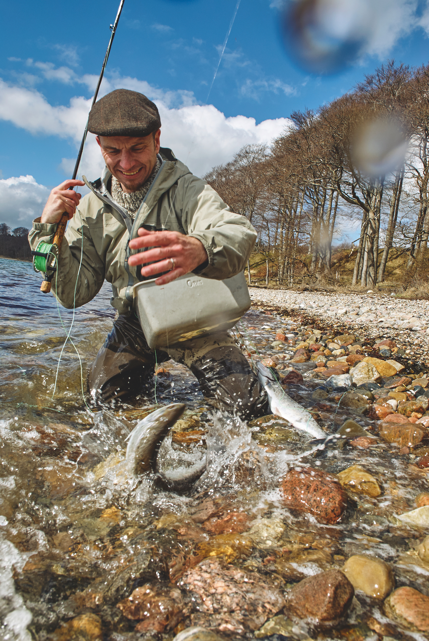 Når vinden kommer rigtigt fra den ene side, og vandet har netop den smule farve, som giver ørrederne perfekte jagtbetingelser, da er fluefiskeriet helt indlysende rigtigt. Når man stille vader i vand til knæene, og fluelinen bølgende bugter sig på de små våger – da kan man falde i en trance og lade kastene flyve af sted over vandet gang på gang. Man træder ind i en meditativ tilstand, lader tankerne strække sig ud til enden af linen og spille det samme rejeskuespil igen og igen. Man forestiller sig, hvordan fluen ligner en reje. Jeg tror, at de fleste kystfluefiskere vil give mig ret, når jeg påstår, at det allermest højspændte øjeblik er, netop der hvor man mærker et lille stød i linen og samtidig ser, at den lyse flueline på overfladen i et ganske kort øjeblik får sit eget liv. Netop i det øjeblik mærker man linen strække sig, noget solidt strammer alt op, og fluestangen står bøjet i en dyb bue mod en havørred, som rusker med hovedet i overfladen. Dét øjeblik er højdepunktet på enhver kysttur.