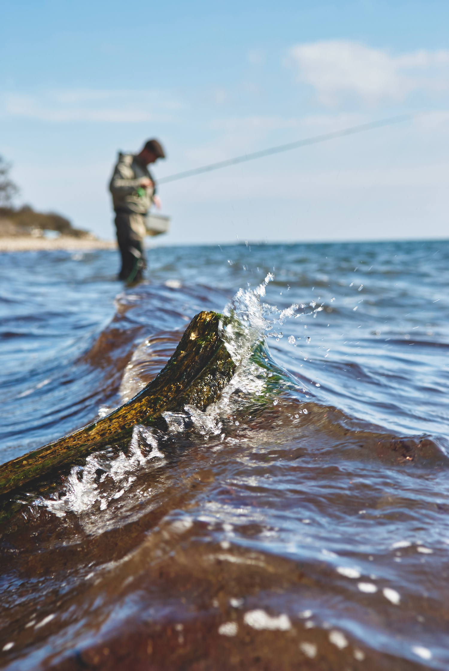 Man lægger ikke så meget mærke til træerne, når man først er i gang med fiskeriet. Som kystfisker er det alligevel et eventyr at fiske her, for kysten ændrer konstant karakter. Fra sandbugtens badekar til stenstrand, vige og spidser. Denne kyst har samlet alt det bedste fra de danske kyster, ja, det er, som om den vil prale og vise de allersmukkeste sider for os kystfiskere. Gennem årene sker der konstant noget ved kysten. På et bestemt sted står de robuste egetræer så tæt på vandet, at de yderste i geleddet har måttet overgive sig til saltvandet. Vand er stærkere end jord og sluger med tiden også de tunge og stolte stammer. Hvert forår forekommer det mig, at der ligger nye egetræer i vandet. De strækker deres kroner ud over badekarret, og man må op på skrænten for at komme udenom.