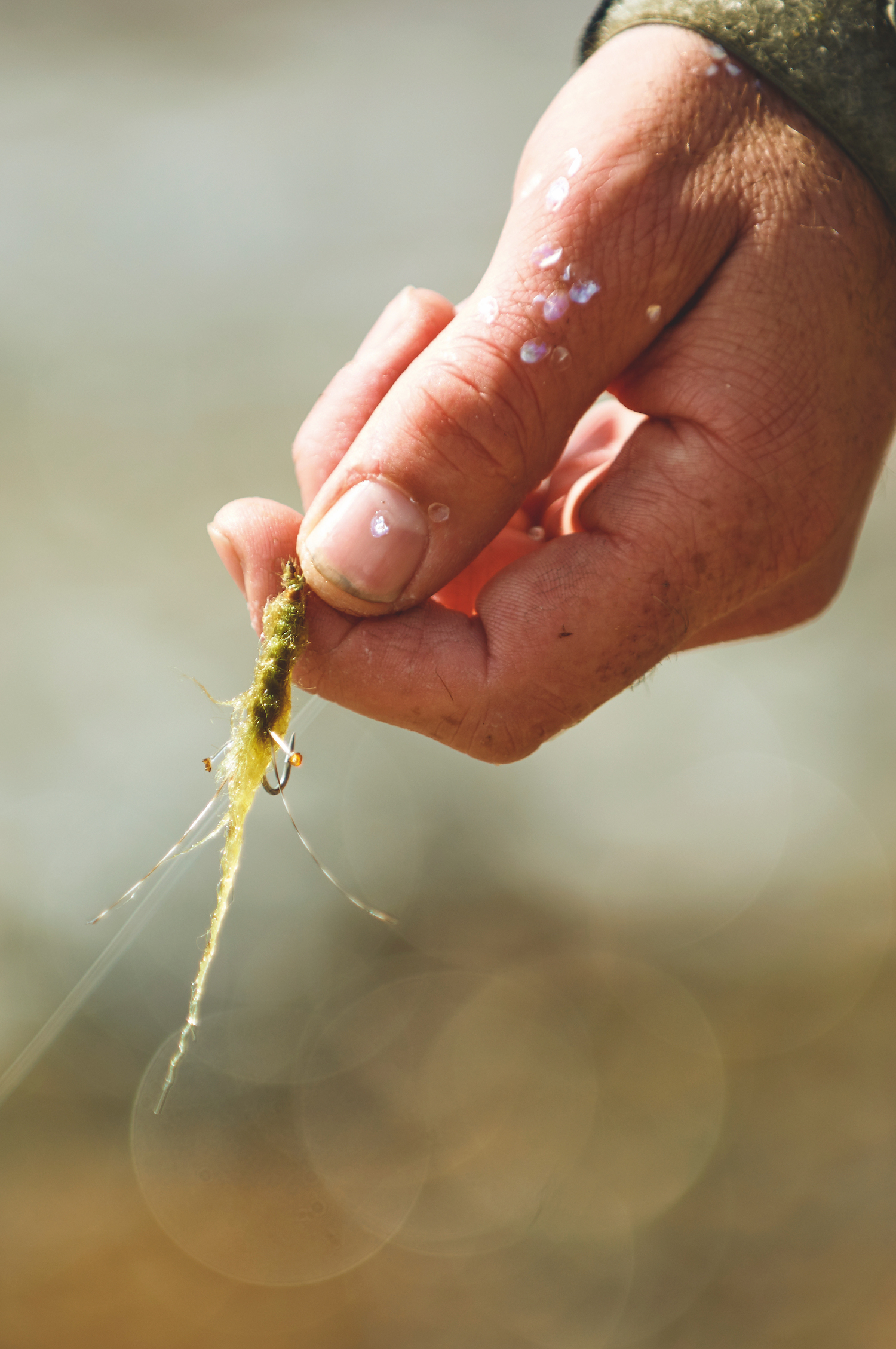 Nogle gange brænder fiskefeberen så stærkt, at der ikke er tid til detaljerne. En forårsmorgen, hvor jeg står og kigger ud ad vinduet, opdager jeg, at lyset har fået en særlig grødet mættethed, som kun kommer, når vinden er lun fra sydvest. Så sker der noget magisk. Jeg kan næsten lugte saltvandet, da jeg åbner døren for at indsnuse luften. Jeg skynder mig at pakke kystgrejet, men da jeg åbner kystflueboksen, sidder der kun en ynkelig samling rustne rejefluer, som er gennemtyggede fra sidste kystsæson. Så må jeg skynde mig at vikle et par fluer, inden jeg kan køre. I al hast bliver et par impressionistiske imitationer til – som mest består af en stor tot dubbing – inden jeg haster mod vandet. Sådan går det næsten altid. Hvert år er det det samme. Fisketrangen overrumpler mig.