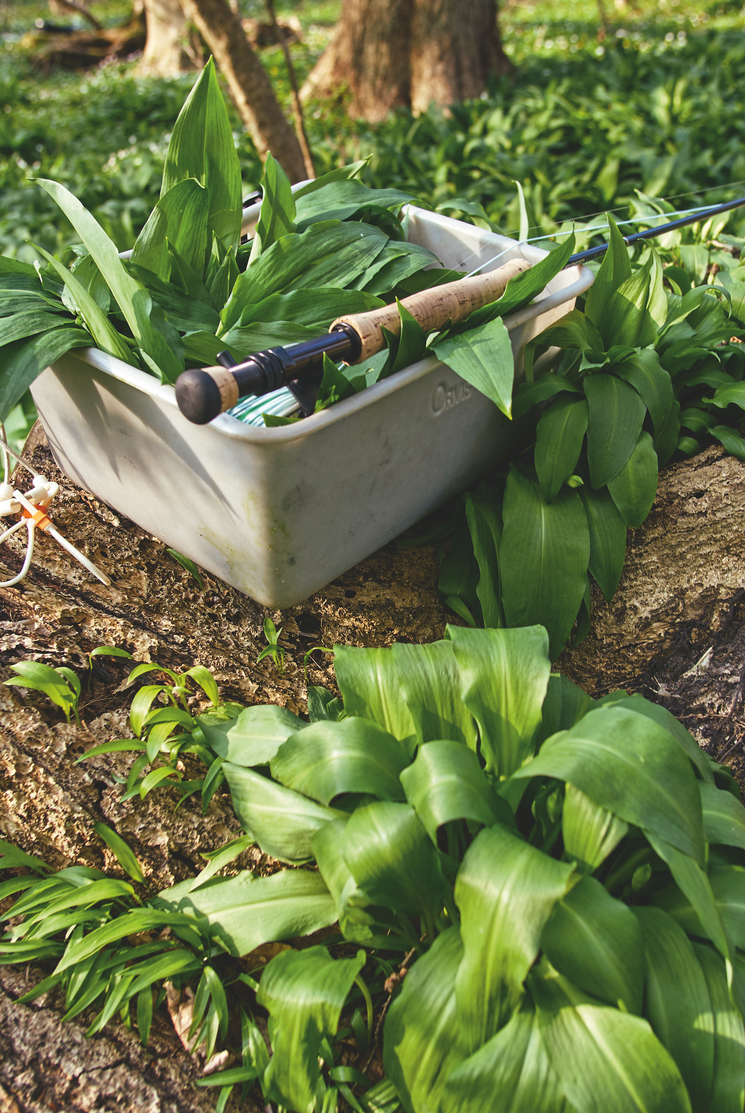 I det tidlige forår er det let at glemme tiden. Dagene er stadig ikke så lange, og lyset og varmen har endnu ikke sat blade på bøgetræerne. Men inde mellem de tykke, grå stammer myldrer det med forårsbebudere. Anemonerne lyser som tusindvis af nedfaldne ministjerner i et univers af lysegrønt. Ramsløgene er også kommet. I store klynger står de med saftspændte blade. Når jeg går hjem fra As Hoveds kyst med en fisk eller to dinglende i galgen, plukker jeg nogle store nævefulde og lægger i linekurven. Man kan roligt gøre det, for ramsløgene er ikke specielt værdsat af skovens vildt. De dufter stærkt af både hvidløg og purløg og smager lige sådan. Men det er en fantastisk krydderurt, som klæder nyfanget havørred. Det siges, at det var spanske lejesoldater, som tog løg med sig, da de var her i landet for at føre krig. De bosatte sig ofte på herregårde. Derfor finder man de stærke løgplanter netop ved herregårde og godser.