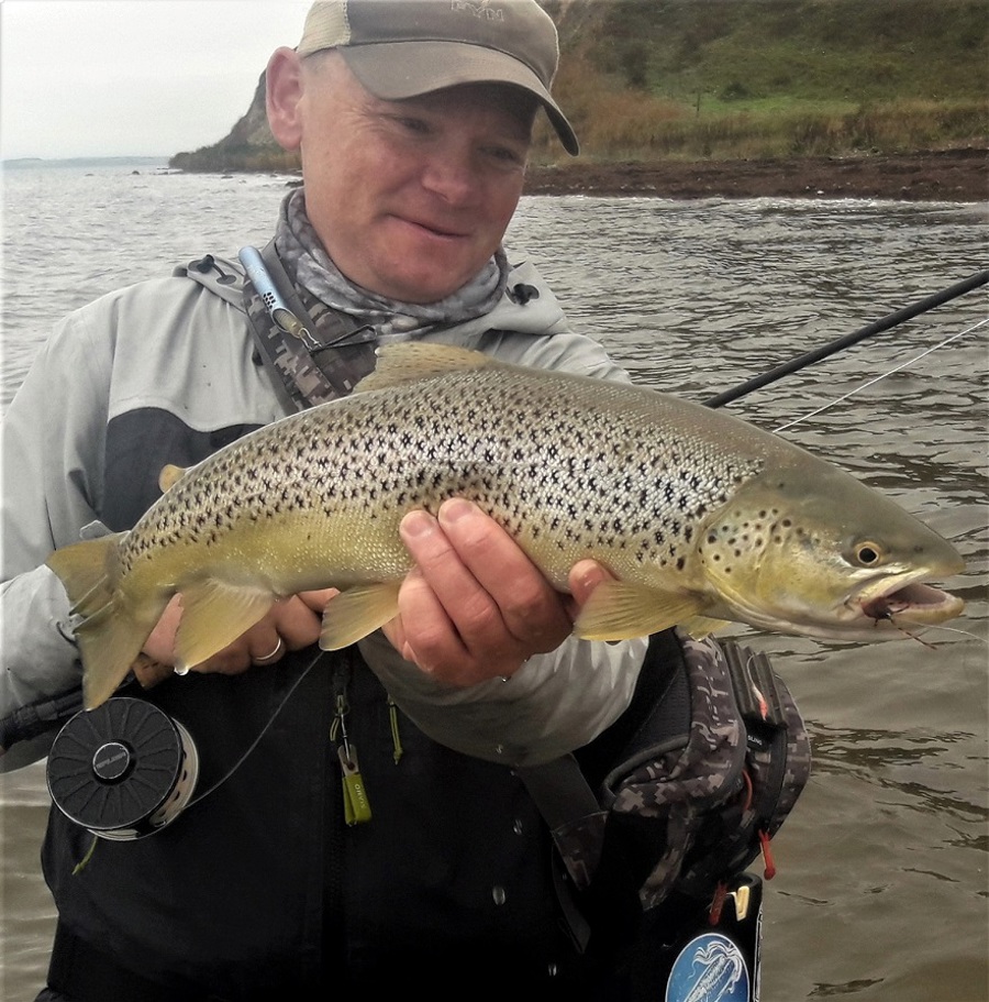 Lars Kyhnau Jensen har med held fisket havørred midt om på sommerdagen.