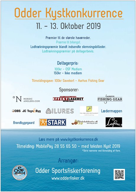 Odder Sportsfiskerforening (OSF) afholder den 11. – 13. oktober en åben kystkonkurrence for alle med trang til kystfiskeriet.