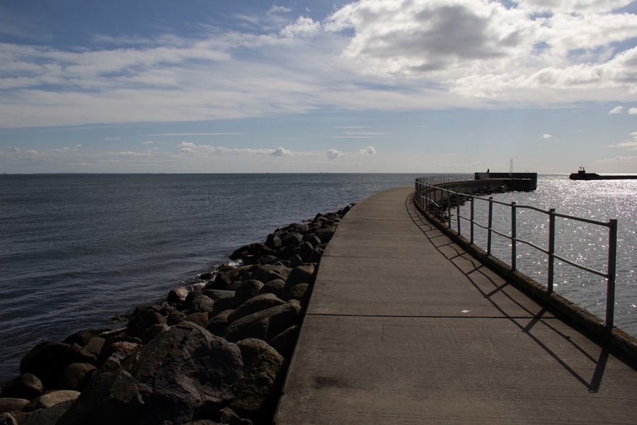 Hvide Odde. Vær opmærksom på hurtigfærgen, for der kommer kraftige bølger ved dens ankomst.