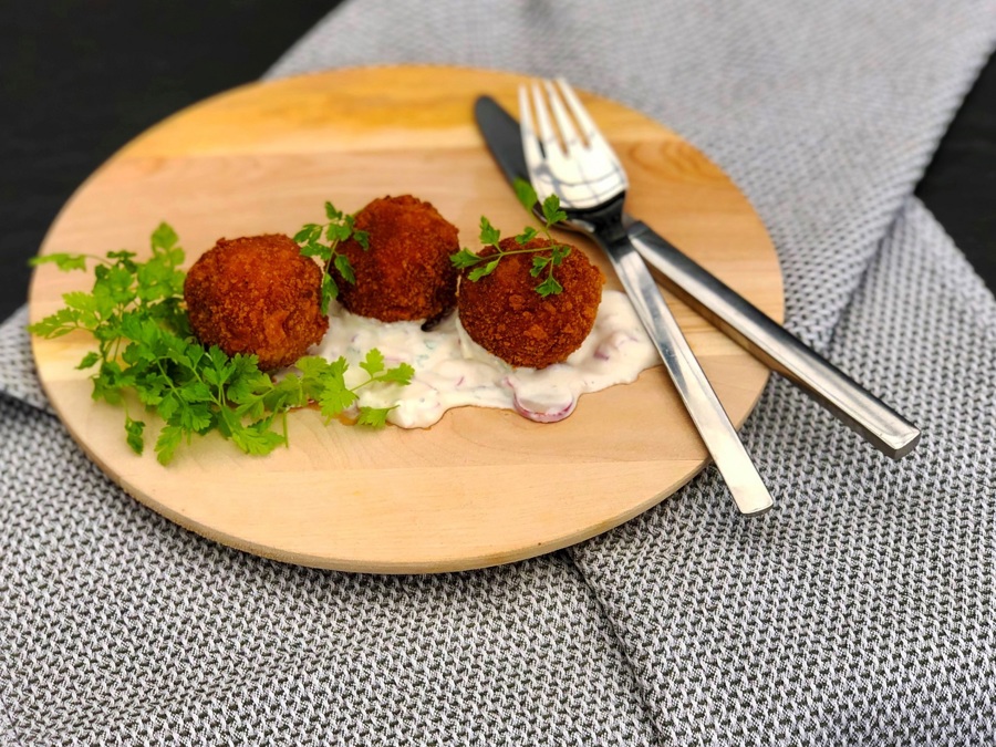 Servér de lune, sprøde kroketter med dressing som en snack, forret eller som tilbehør til en hovedret.