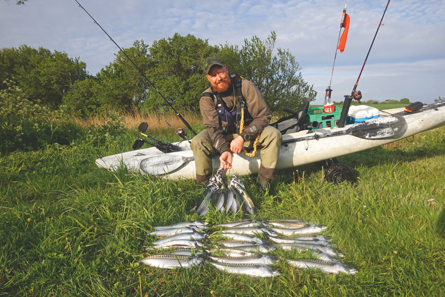Når havet ligger fladt hen, valfarter mange lystfiskere til yderkystens moler og høfder for at jagte makreller. Men de hårdt kæmpende minitun kan også fanges i mange danske fjorde – selv når vejr og vind driller – og her er kajakken det perfekte fiskefartøj. Kajakfiskeren Anders Larsen giver dig tips til fjordens fede makreller.