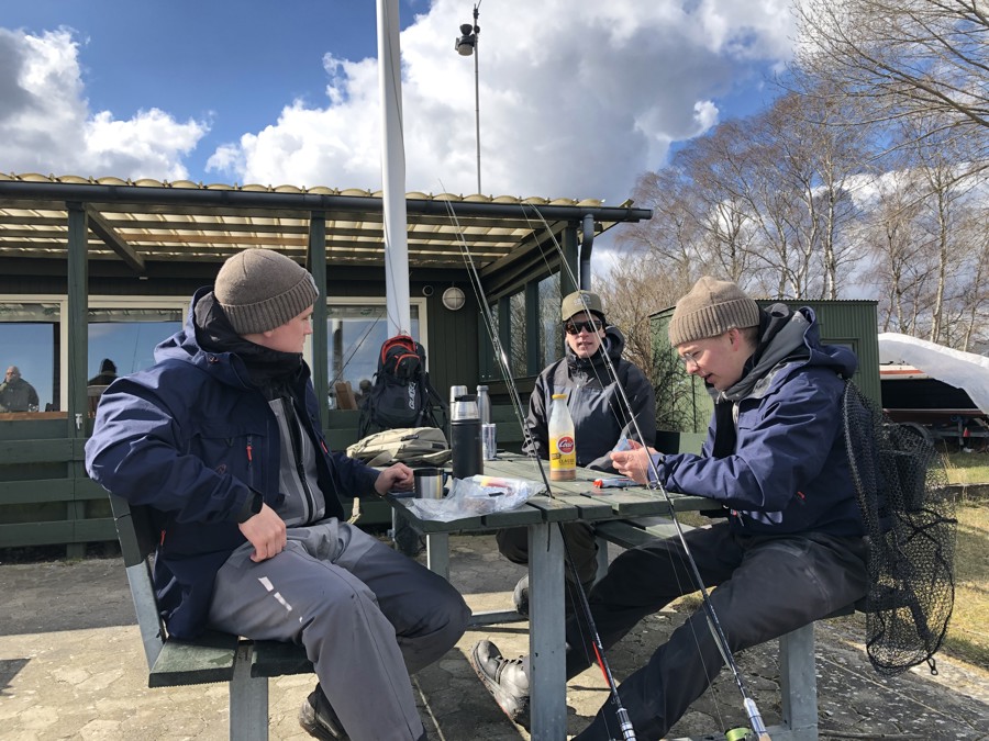 Efter et par timers fiskeri i tilnærmelsesvis perfekte forhold, samledes hele gruppen til frokost. Der var kun en enkelt kursist, som kunne prale af fangst – en flot blank havørred omkring målet. Da energidepoterne igen var ladet op, fiskede deltagerne intenst videre i jagten på flere fisk. Desværre blev det dog ikke til mere på denne dag, hvor forholdene ellers var fine.