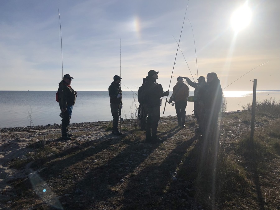 Forårssolen skinnede, men temperaturen var stadig lav, seks friske kursister mødte op på Kystvejen på Stevns. I dagens anledning fik kursisterne fornøjelsen af hele tre fiskeguides. Danmarks Sportsfiskerforbunds instruktør Simon Straarup havde nemlig taget to nyuddannede instruktører med i form af Albert Basse og Frederik Nørbæk. De to er begge uddannet fiskeinstruktører på Fiskeakademiet og på denne dag skulle de fungere som instruktører for første gang.