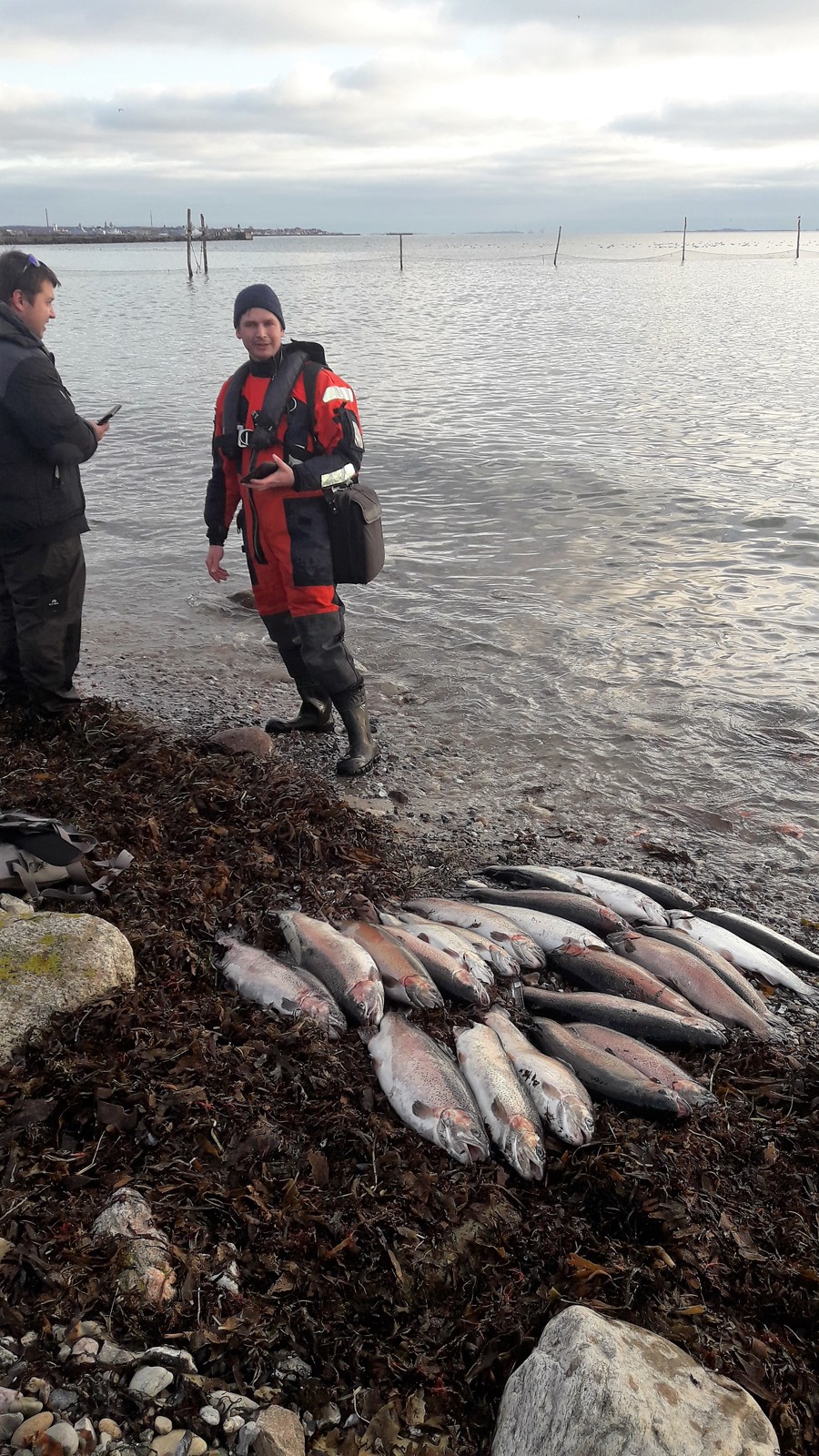 Lystfiskerne skovlede ørreder op, –alle former for agn blev anvendt og alt fungerede. Enkelte lystfiskere havde 30-50 fisk liggende på stranden.