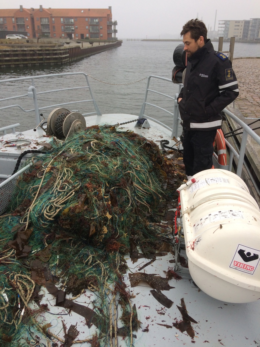 Fiskerikontrollen måtte bruge flere dage på at bjærge ulovlige garn i Storebælt til en værdi af 66.000 kr.