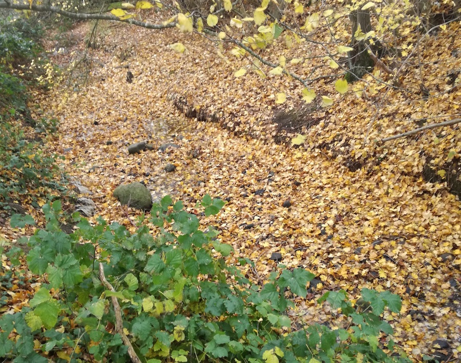 I dette udtørrede vandløb gyder ørreden normalt i starten af december.