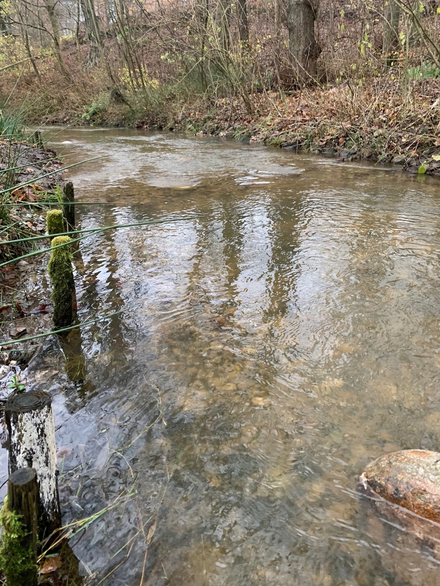 Man kan være heldig at se gydende fisk i Lægård Bæk inde midt i byen.