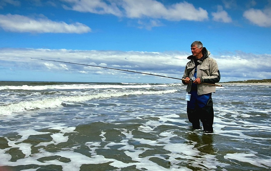 Michael tager gerne sit surfcastinggrej med ud til Vestkysten. Et fiskeri han kender godt fra sin tid i England.