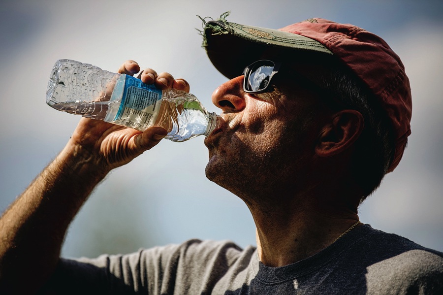 En Stenbider tanker op.